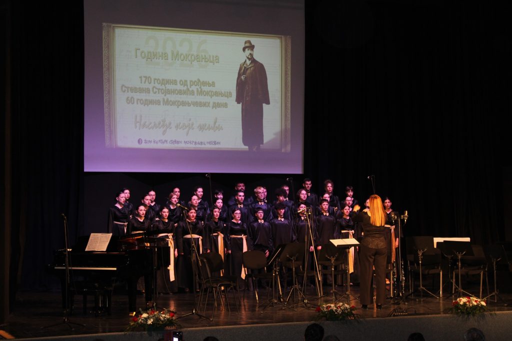 У првом делу концерта наступио је хор средње музичке школе под управом Ружице Рајковић. Публика је имала прилику да чује Осму руковет, „Акатист Богородици“, као и Четврту руковет Стевана Мокрањца, уз солисте Павла Јовановића (баритон) и Миљу Виденовић (клавир).